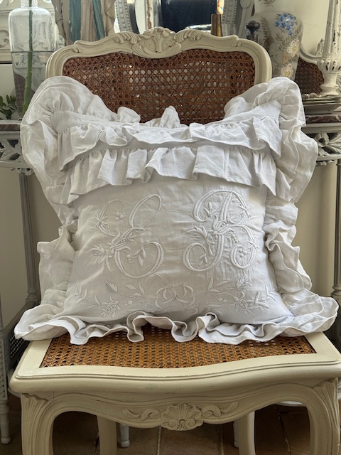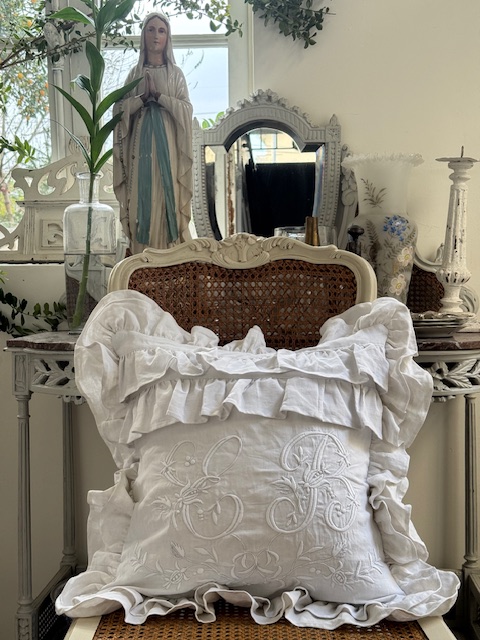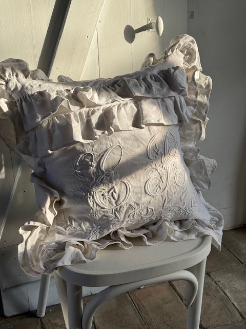 1900年初頭のフランスアンティーク リネンクッションカバー