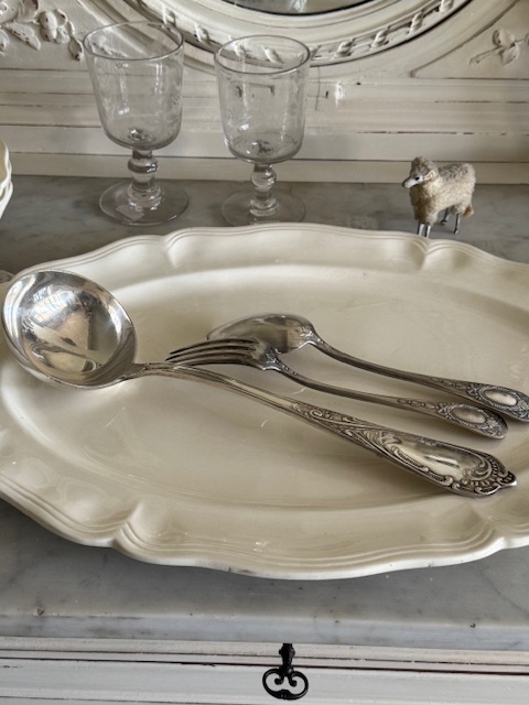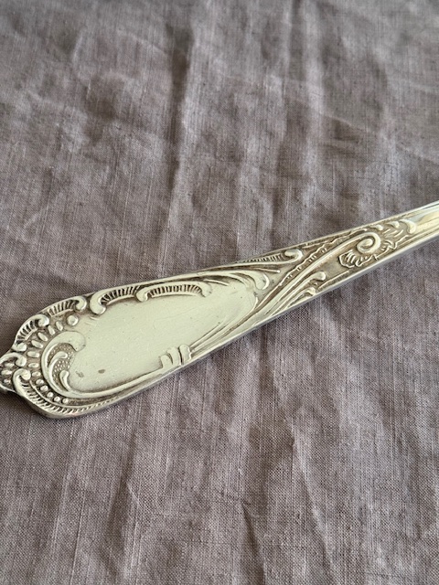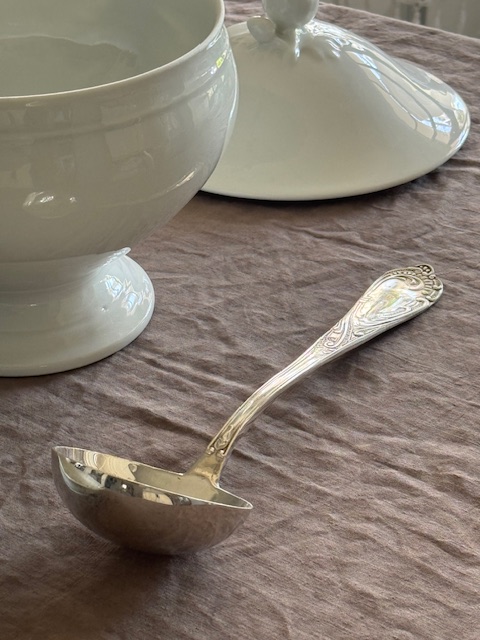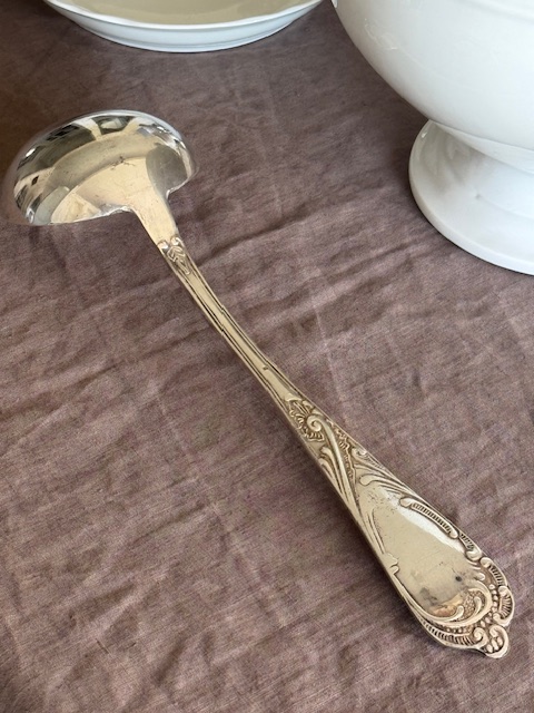 1900年初頭のフランスアンティーク、シルバープレートのレードルです。銀の美しい輝きと、クラシカルな装飾が魅力のお品です。