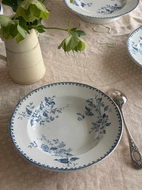 フランス北部の名窯サンタマンによる「CAIFFA」シリーズは、淡いブルーで描かれた繊細な花模様が印象的な人気シリーズです。