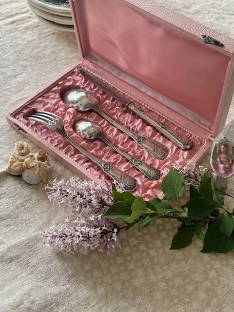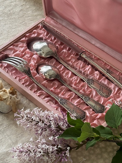 フランスでは、こうした名入れのカトラリーは洗礼や初聖体、誕生など人生の節目に贈られる特別な品です。