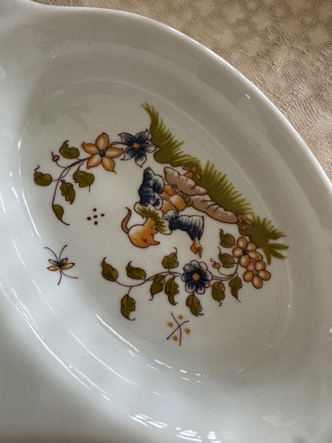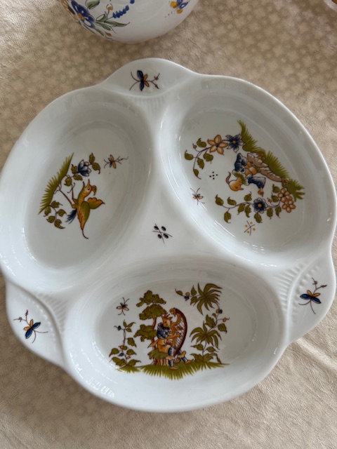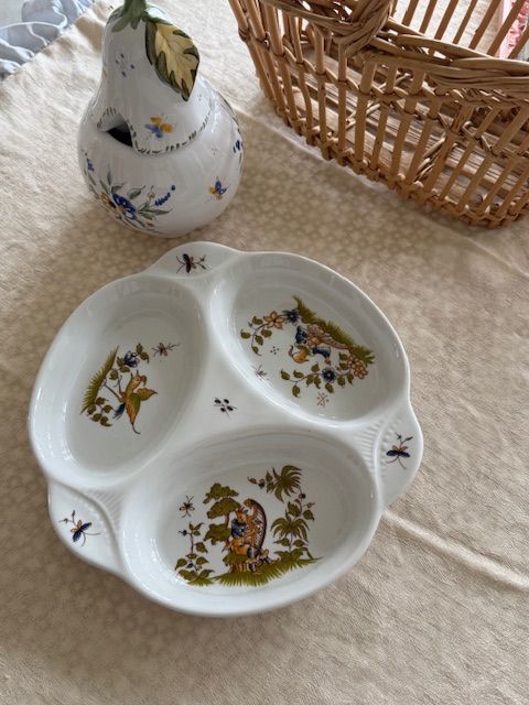 フランス「Vieux Moustiers」シリーズの三つ仕切りのポーセリンディッシュです。