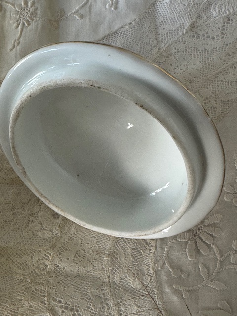 蓋の内側には、製造時にできた陶土の接着ラインのような跡が見られますが、こちらはひびや欠けではなく製造過程によるものです。
