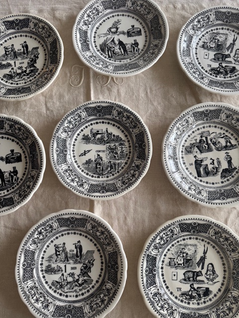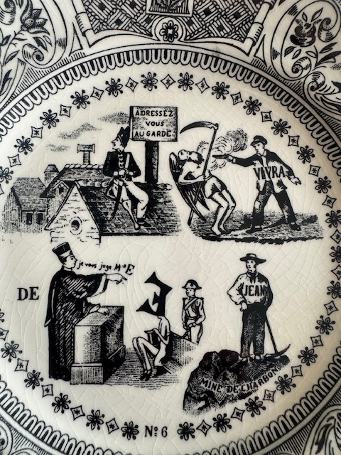 フランスらしい言葉と当時の社会を映し出すストーリーが詰まったコレクションとしても魅力的なアンティークプレートです。