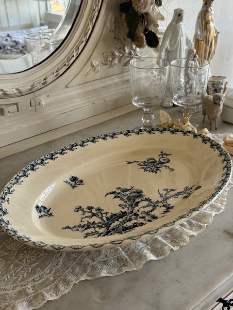 フランスアンティーク ジアン(Gien)“CHARDONS” シャルドンシリーズ オーバルプレート