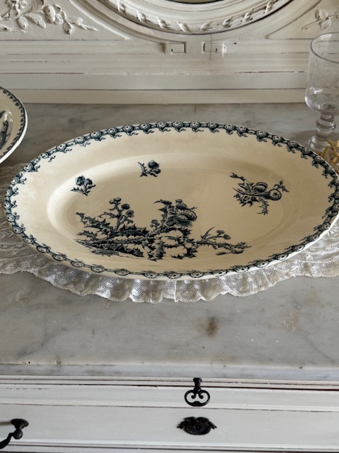 1900年初頭のフランス、ジアン(Gien)窯による大きなオーバルプレートです。