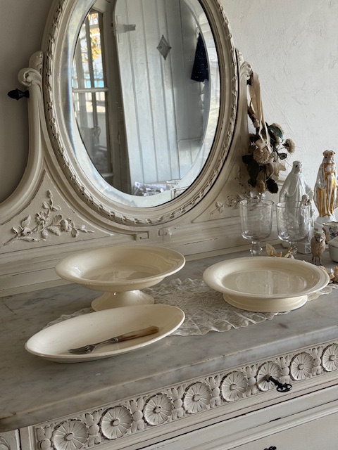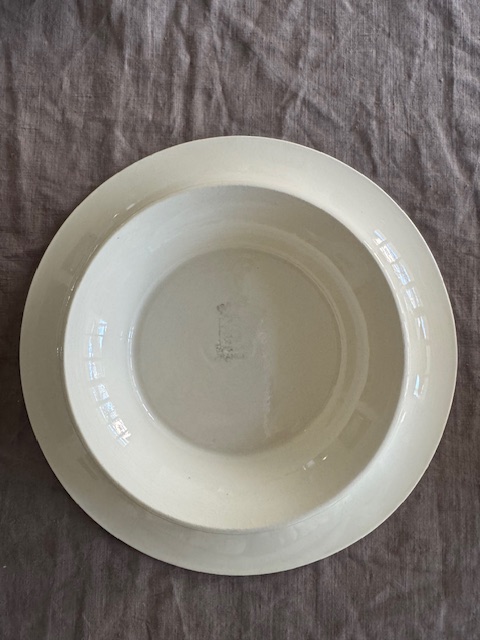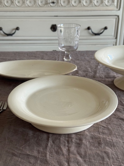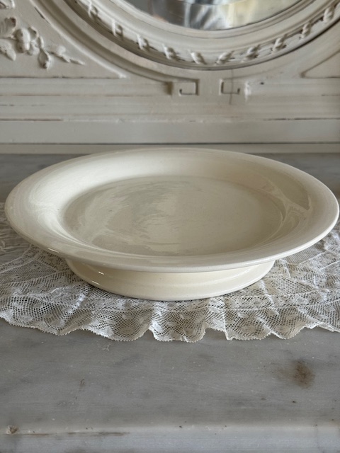 平らなフォルムに低めの台座がついており、もともとはケーキやフルーツを盛るために使われていたお皿です。