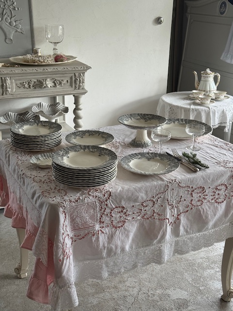 シリーズ全体が未使用と思われるほどきれいな状態で揃っているため、前菜プレートとの組み合わせでコーディネートされると、より一層統一感のある美しいテーブルシーンが完成します。