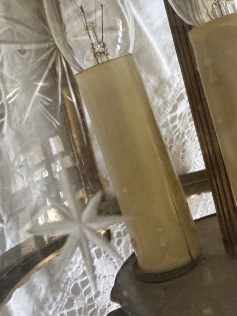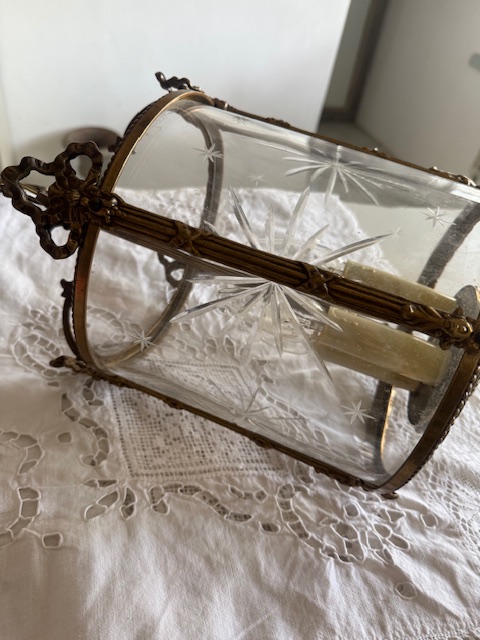 当時の手仕事によってガラス全面に施された星のような美しいエッチング模様が印象的なお品で光が灯るとその繊細な模様が浮かび上がりとても幻想的な表情を見せてくれます。