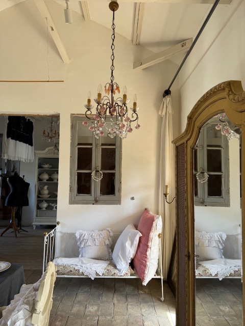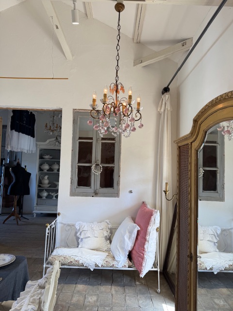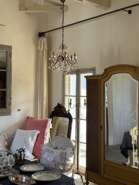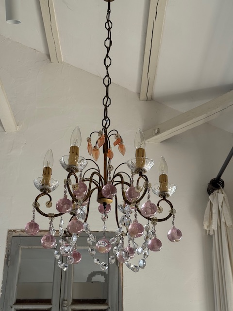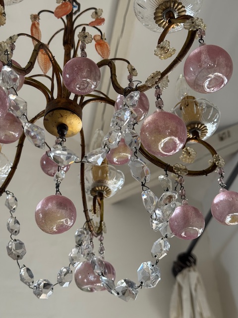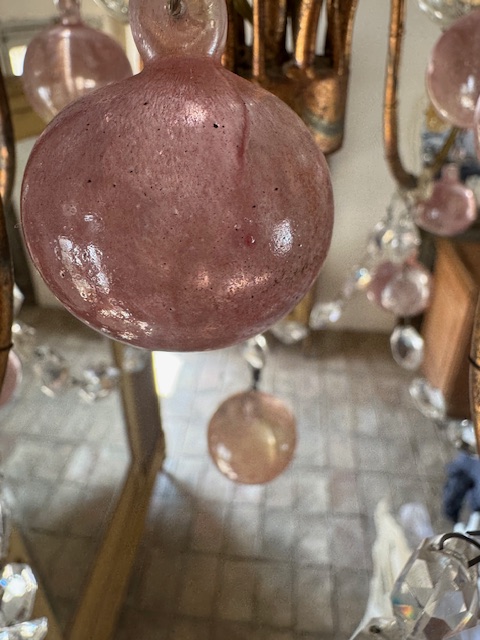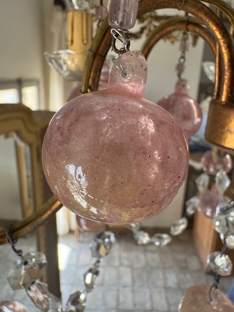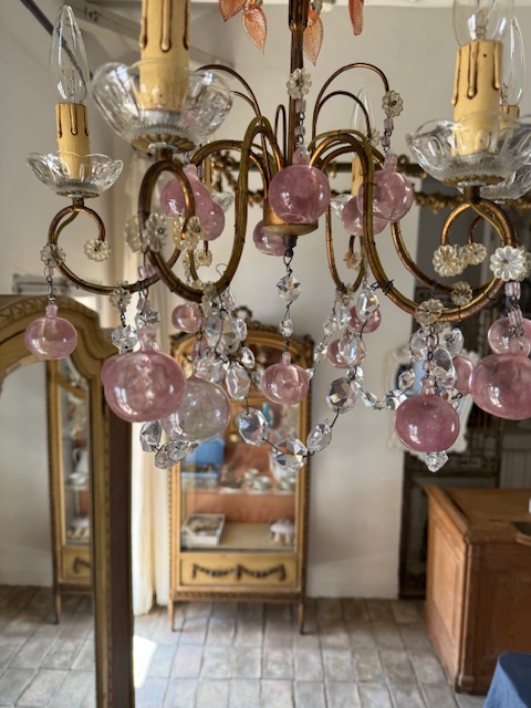 フランスアンティーク可愛らしいピンクの果実が連なるシャンデリア。