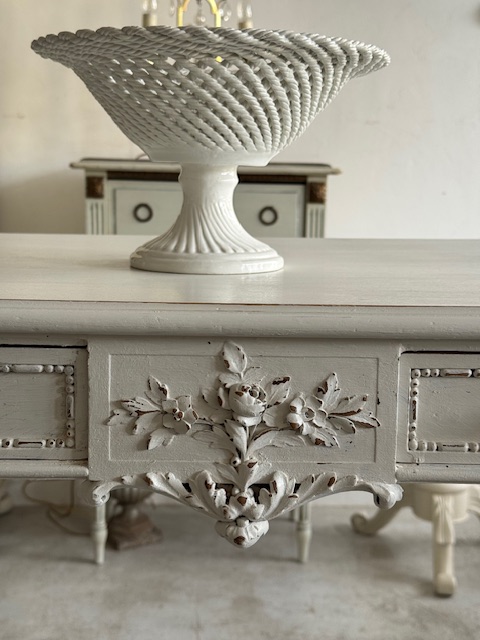 1900年初頭のフランスアンティーク立体的なバラの木彫装飾が大変美しいコンソール型テーブルです。
