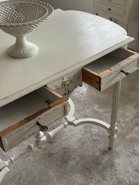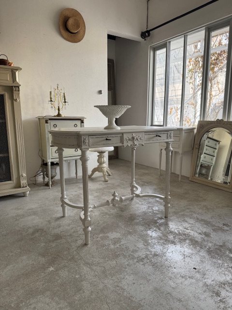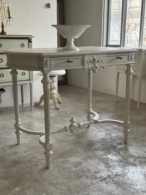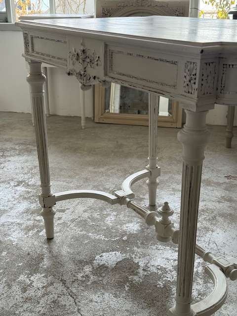 実用性と装飾性を兼ね備え、空間にフランスアンティークならではの優雅さを添えてくれる、雰囲気のある一点もののコンソールテーブルです。