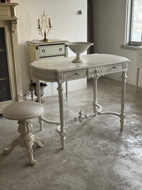 バラ装飾 コンソール型テーブル(薄いパールグレー)