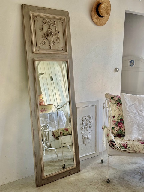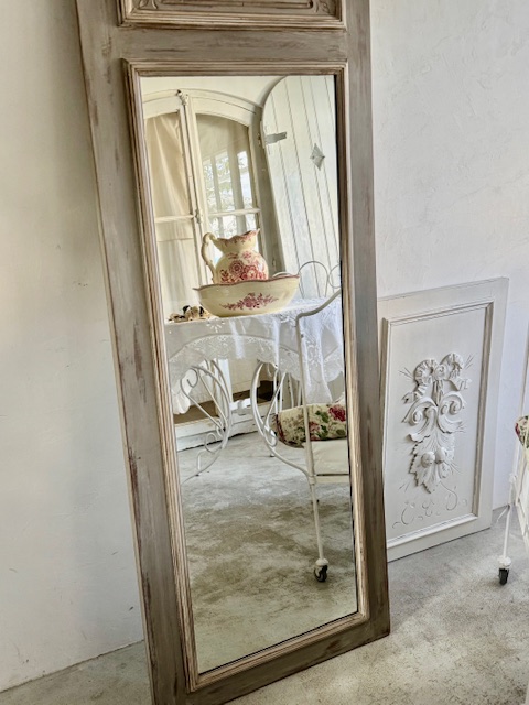 なかなか出会えない細身&高さのあるアンティークミラー。お探しの方にぜひおすすめいたします。