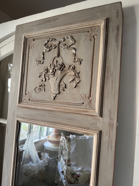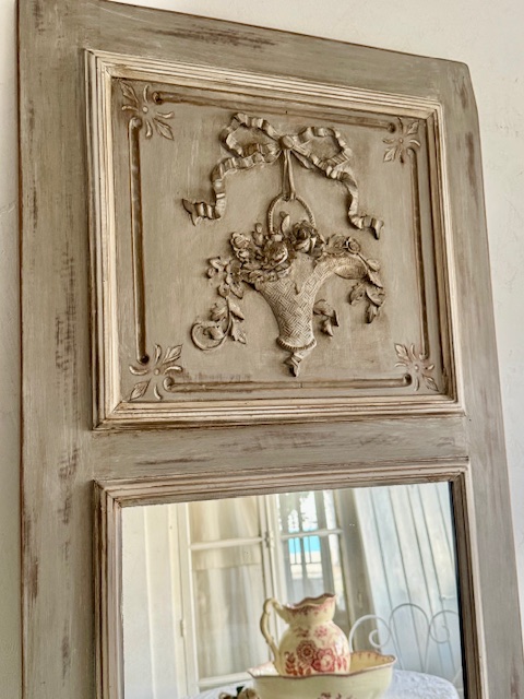 フランスアンティーク 1900年初頭 リボン&フラワーバスケット装飾ミラー
