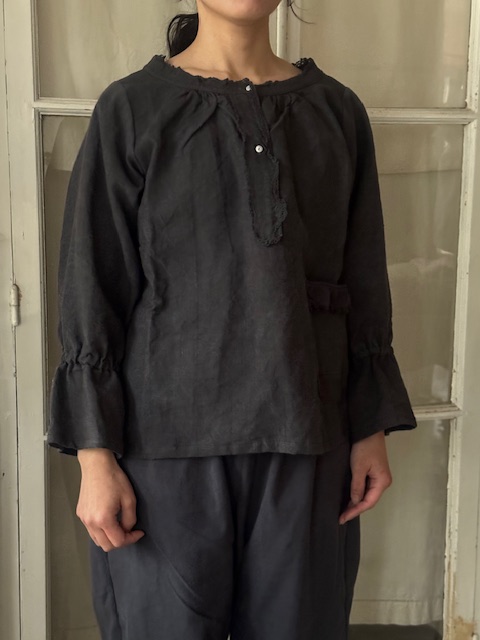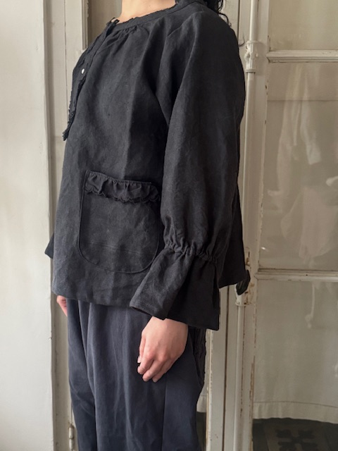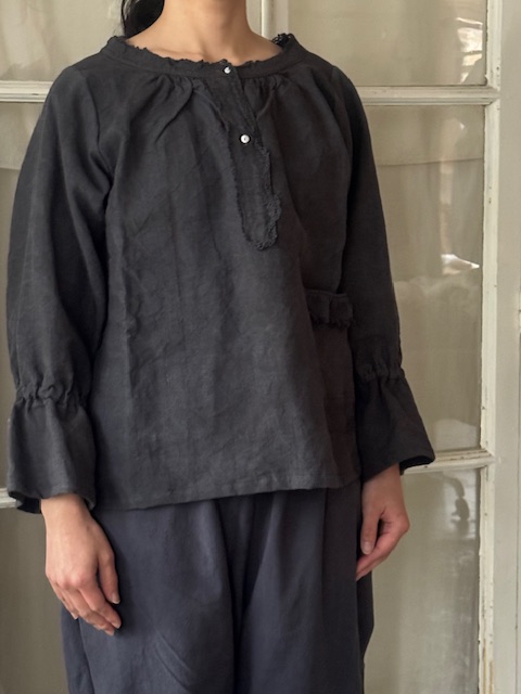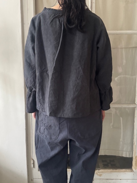 パンツにもスカートにも合わせやすくジーンズとのカジュアルなコーディネートから同系色のアンティークリネンパンツと合わせたセットアップ風の着こなしまで幅広いスタイルを楽しめます。