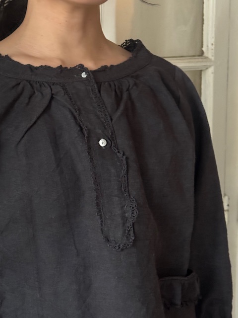 袖口はゴム仕様でアンティークのやさしい女性らしさを感じるデザインです。