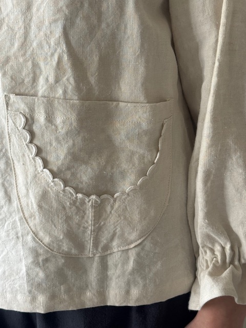 フロントにはポケットが付いておりその周囲にも当時の手仕事があしらわれた細部まで美しい一着です。