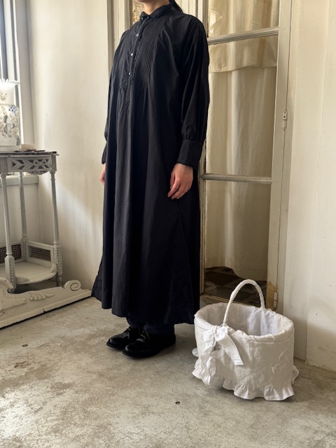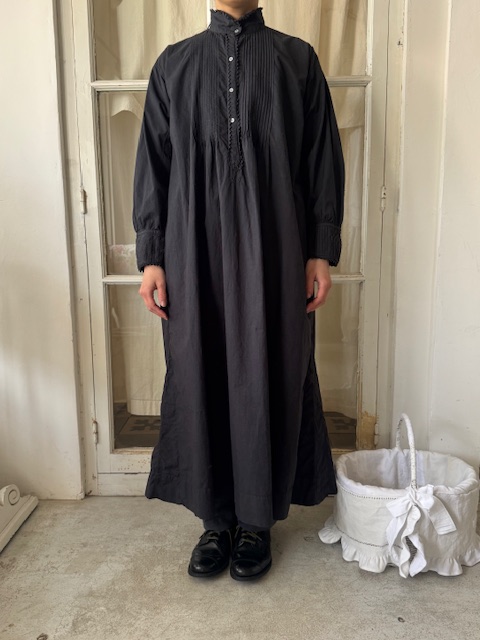 胸元には非常に細やかなプリーツが丁寧に施されてお、当時の手仕事ならではの繊細さと美しさが際立つデザイン。