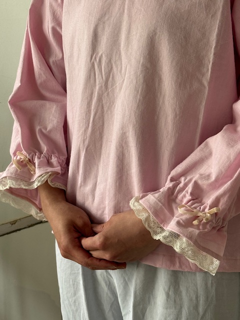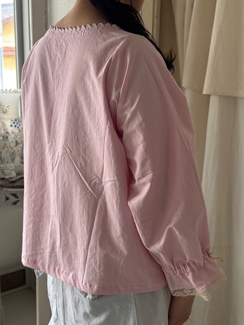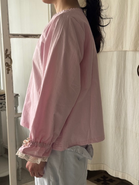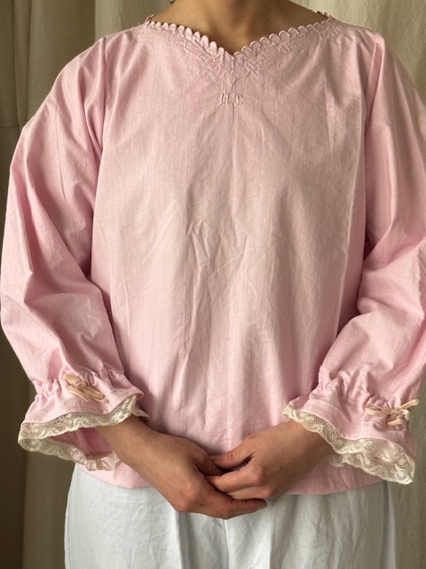 パンツにもスカートにも合わせやすく一枚で主役としても、重ね着のインナーとしても活躍する春のお花のようにやさしく、長く寄り添ってくれるアンティークトップスです。