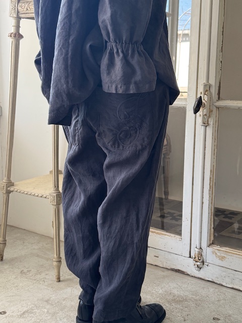 1900年代初頭の柔らかくとろりと落ち感のある大変上質なフランスアンティークリネンを贅沢に使用したフリーサイズの特別なパンツです。