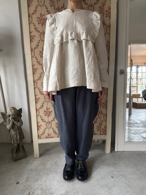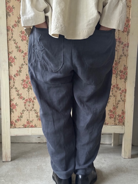 1900年代初頭の柔らかくとろりと落ち感のある大変上質なフランスアンティークリネンを贅沢に使用したフリーサイズの特別なパンツです。