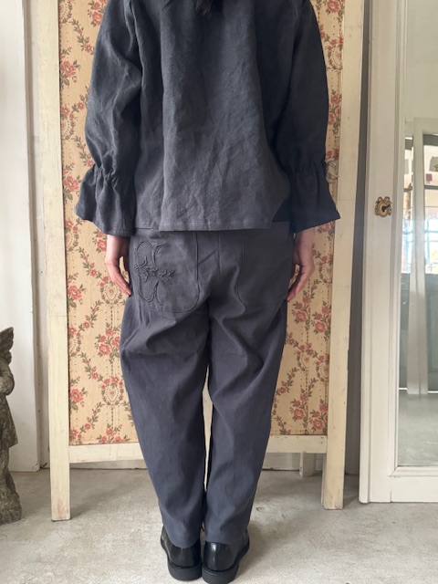 ニットやブラウスを合わせた際にも後ろポケットからふと覗く刺繍が上品なアクセントとなり“大人のかわいさ”を引き立ててくれるデザインです。