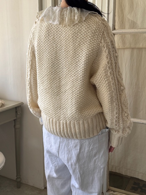 セーターやニットを合わせた際ちょうどフリルが覗くバランスがとても可愛らしくカーディガンやスウェットなどカジュアルなアイテムとも相性良くお楽しみいただけます。