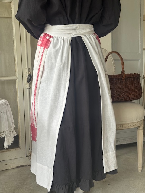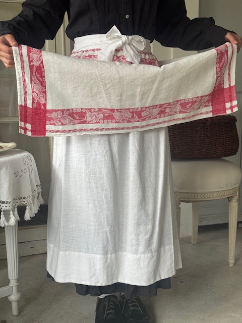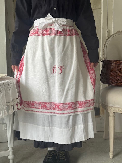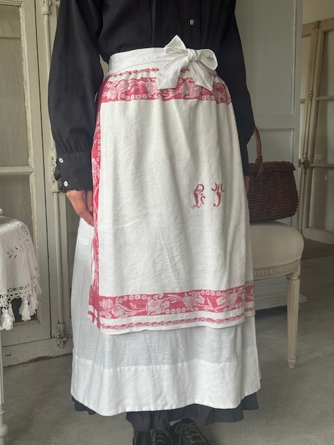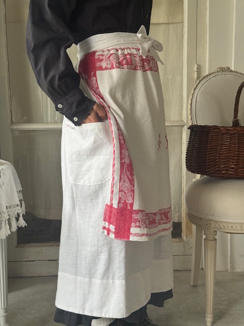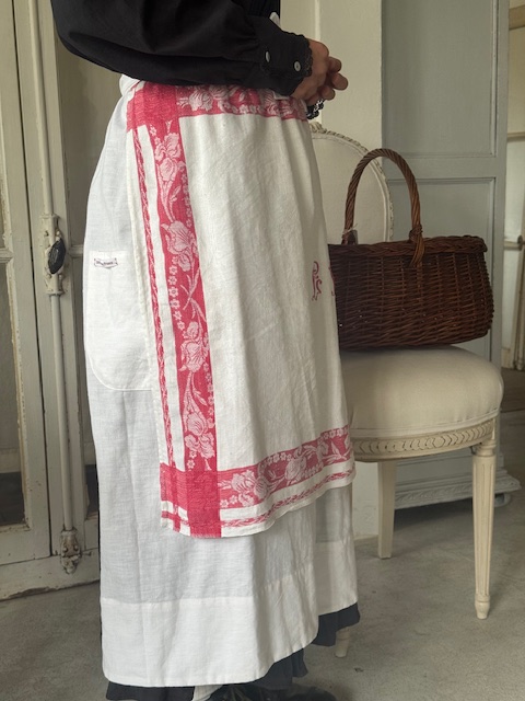 フランスアンティーク エプロンスカート(1900年初頭 ホワイトリネン×レッドトリム)