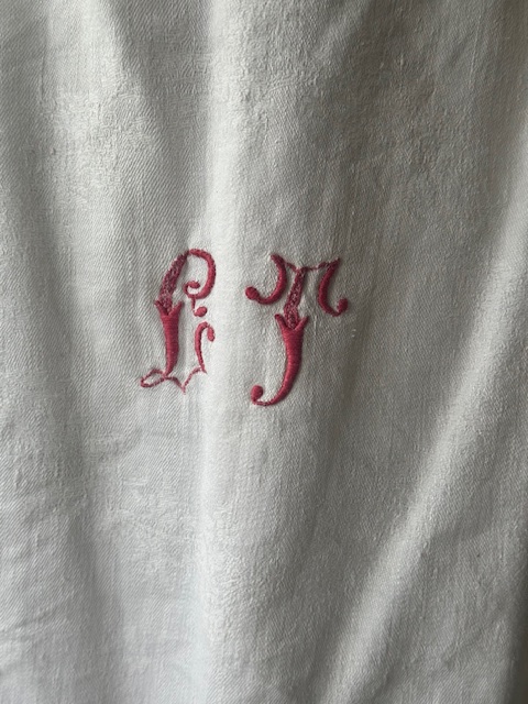 本体の生地には、時を経たホワイトリネンが使われており、柔らかく手に馴染むような滑らかな質感が特徴です。