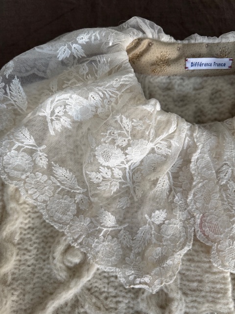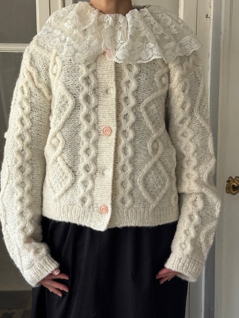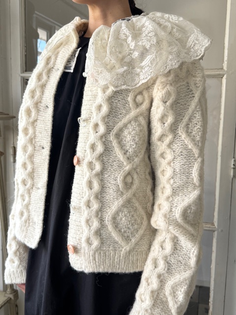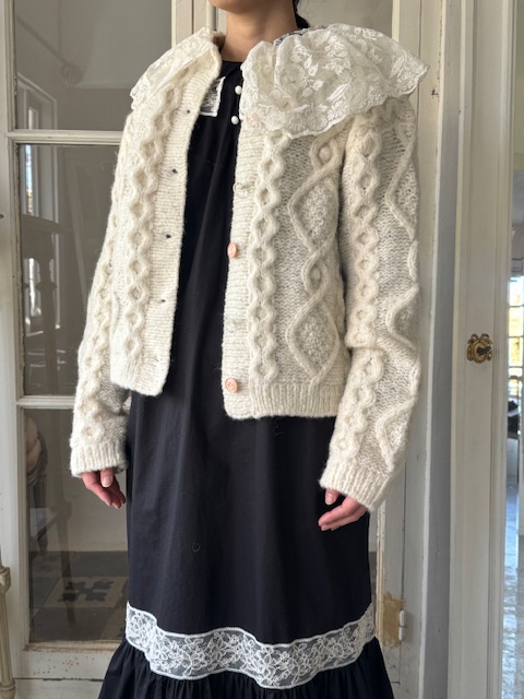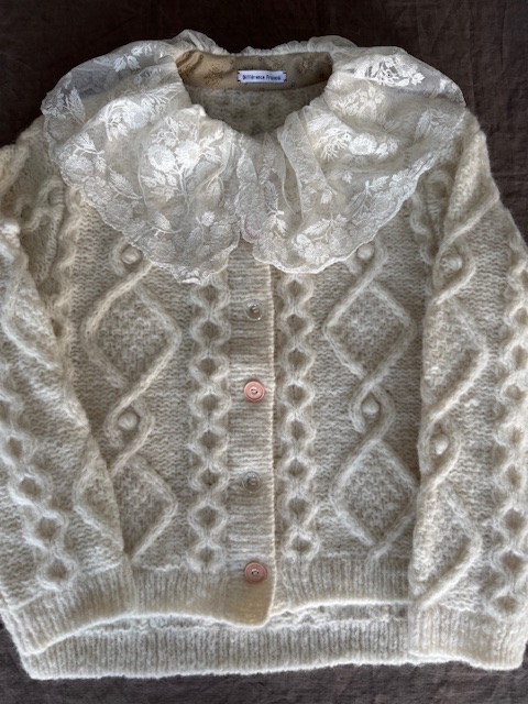 フランスアンティークレース × ベイビーアルパカ手編みカーディガン