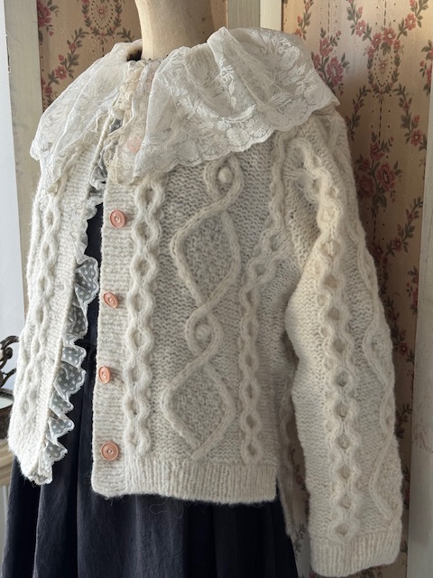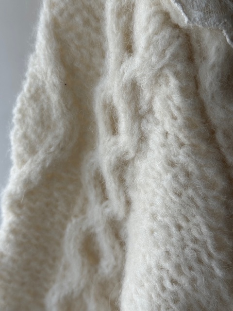 ベイビーアルパカを贅沢に使用したとても軽く柔らかくそしてしっかりと温かい手編みのカーディガンです。