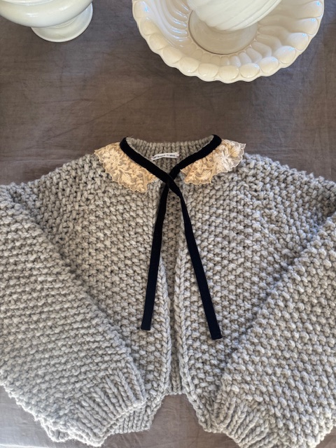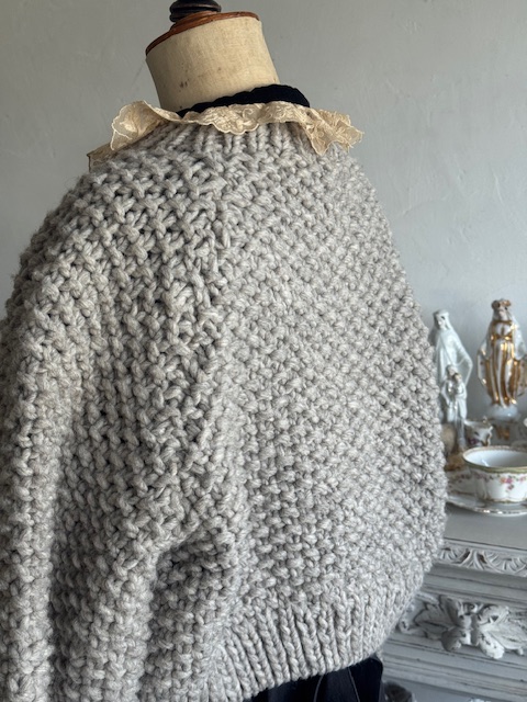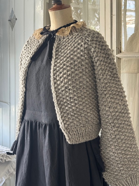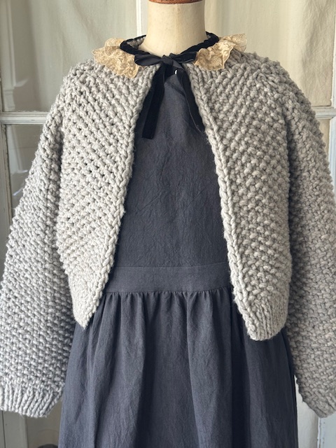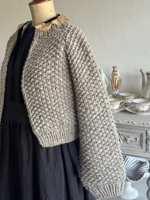 シルエットはラグランスリーブでアームにゆとりがあり、厚手のニットやスウェット、アンティークブラウスなどボリュームのあるお洋服の上にもゆったりと重ねていただけます。