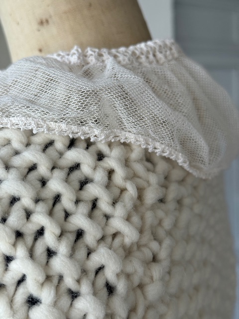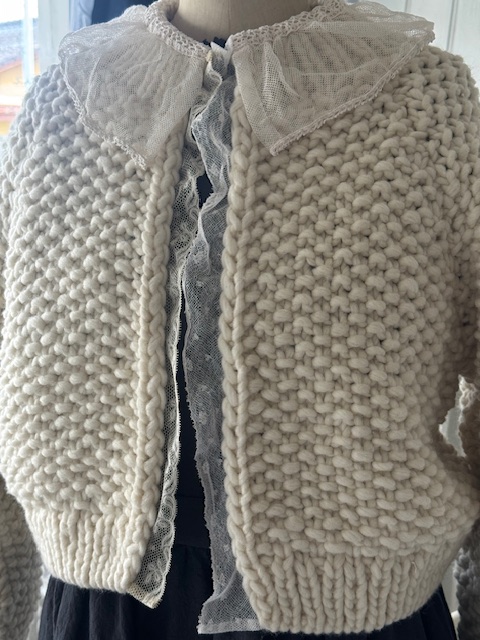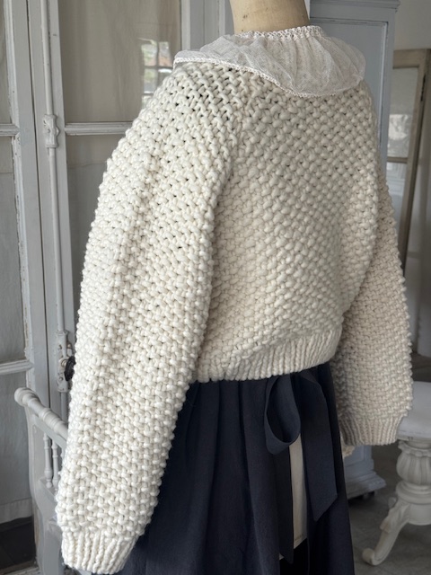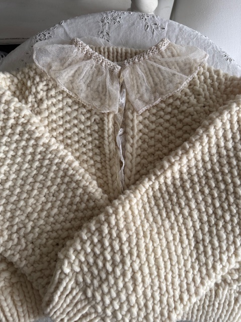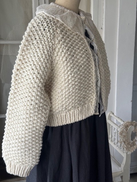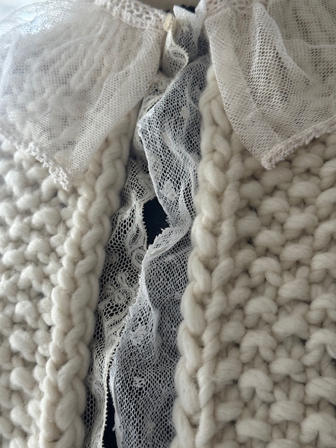 フランスアンティークレース付き 手編みカーディガン