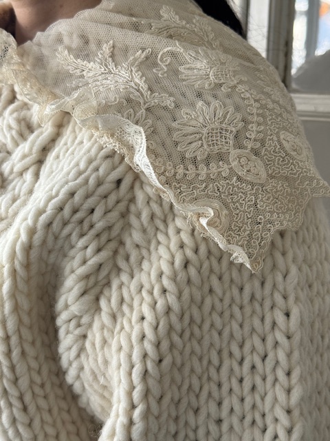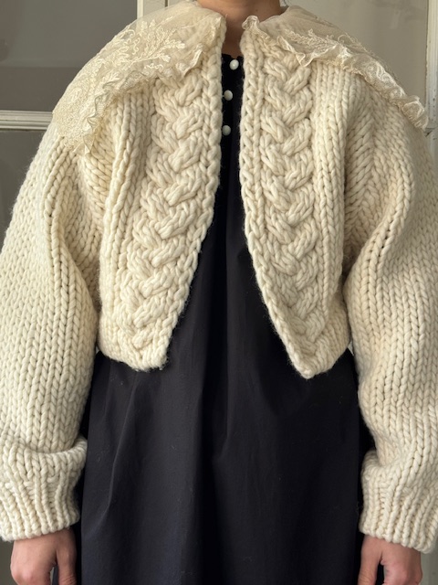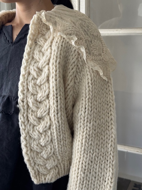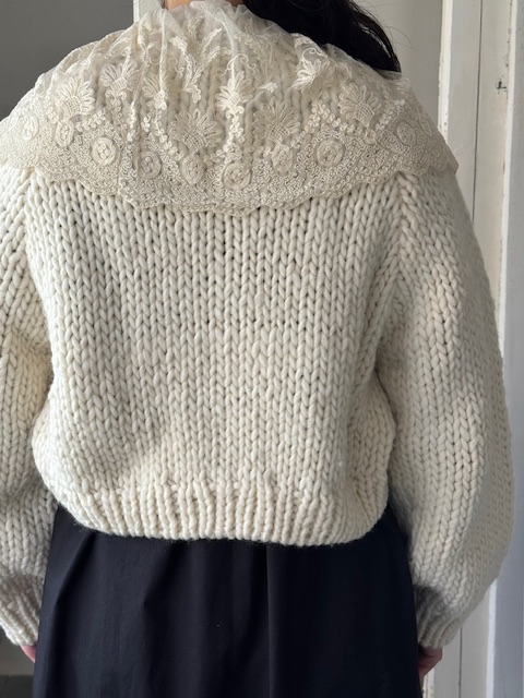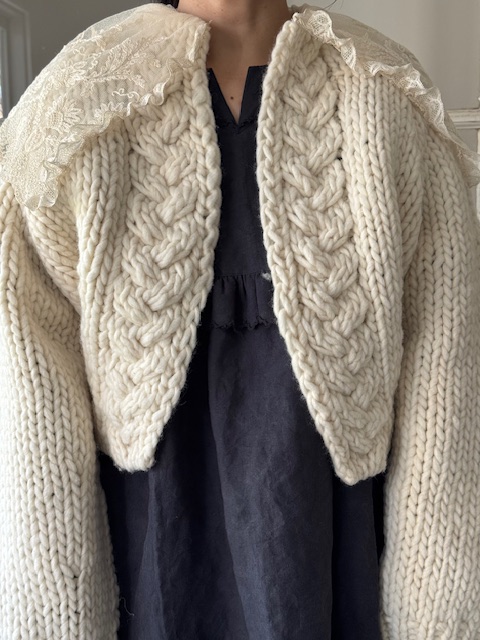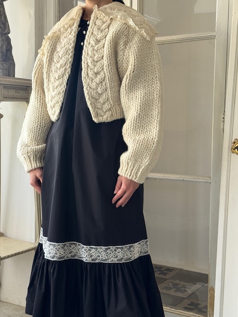 1900年代初頭 フランスアンティークレース ×手編みウールショートカーディガン