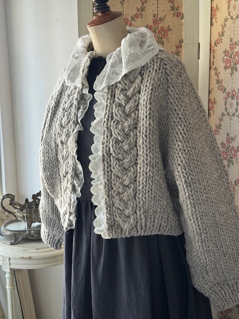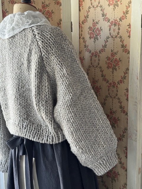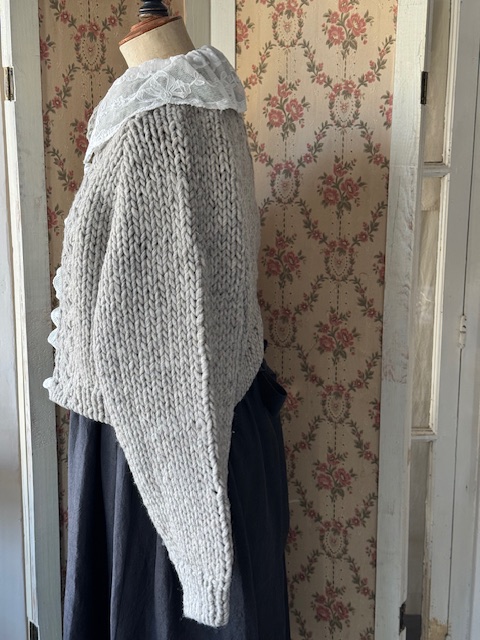 お袖はラグラン仕様になっておりアンティークのブラウスやボリュームのあるお袖のお洋服の上から羽織っていただいても袖元がもたつかずすっきりとしたシルエットでお召しいただけます。