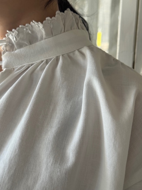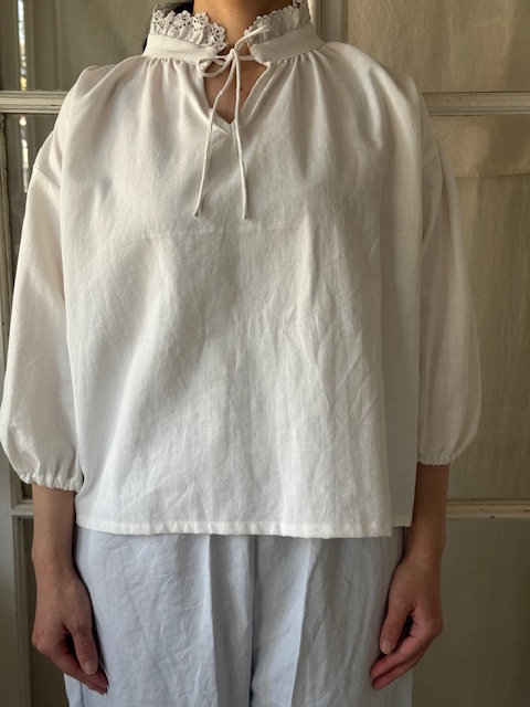 とても柔らかく薄手で軽やかなふんわりと空気を含むような上質なリネンで仕立てられたブラウスです。