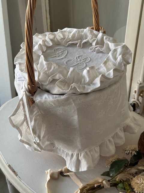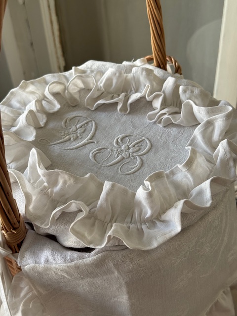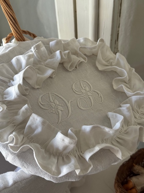 美しい当時の大きめ手刺繡イニシャルが施されています。