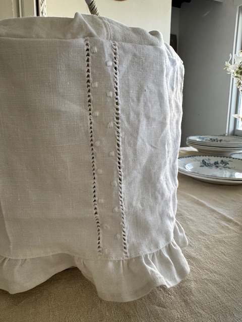 パニエ本体は現行品です。優しいホワイトのお色がアンティークのリネンカバーと美しく調和しています。