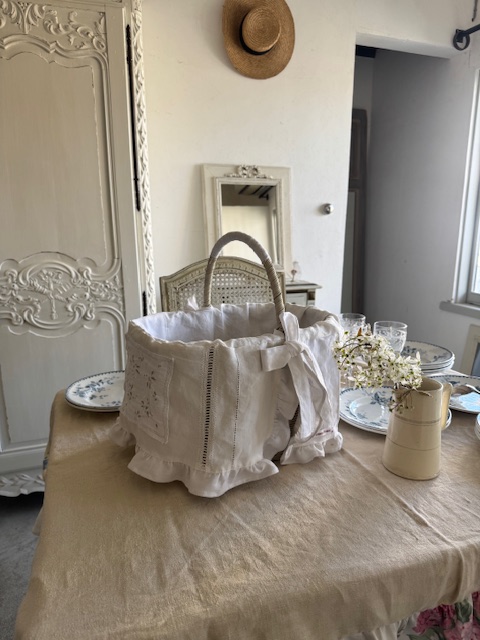 アンティークのリネンを日常に取り入れられる、大変かわいらしい実用性のあるパニエです。