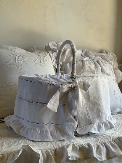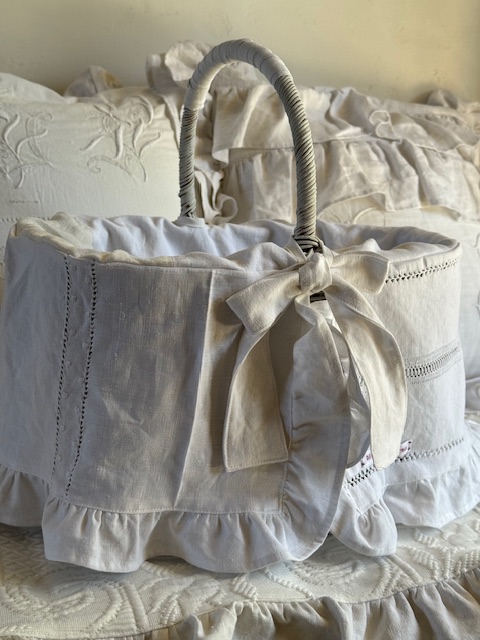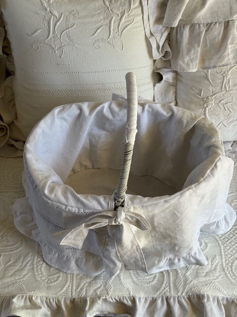 アンティークのリネンを日常に取り入れられる、大変かわいらしい実用性のあるパニエです。