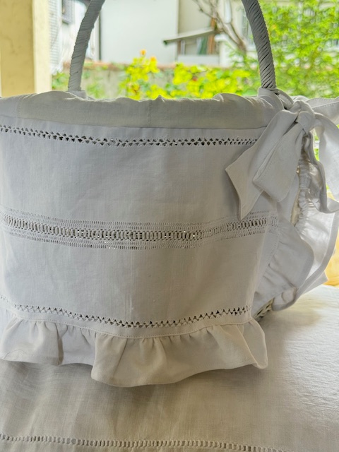 アンティークのリネンを日常に取り入れられる、大変かわいらしい実用性のあるパニエです。