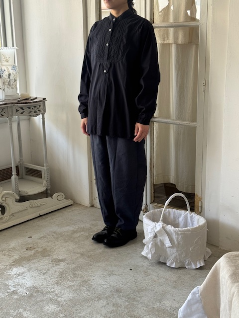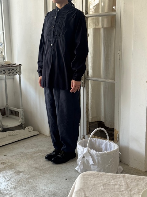 胸元には細やかなギャザーが丁寧に施されており当時の手仕事ならではの繊細で美しい仕立てが魅力の一着です。
