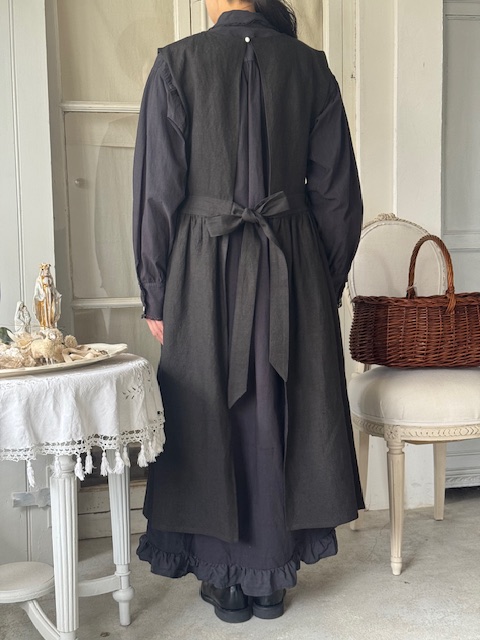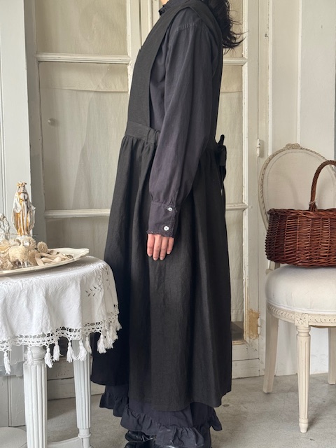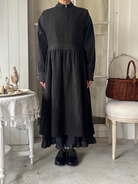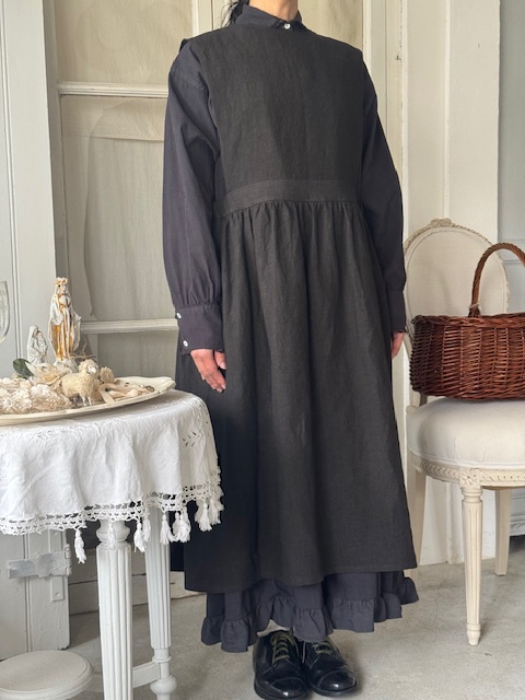 セルティック民族タブリエワンピース 厚手リネンエプロンワンピース
