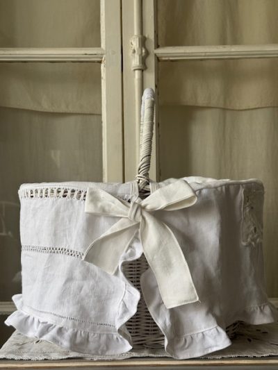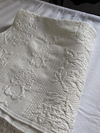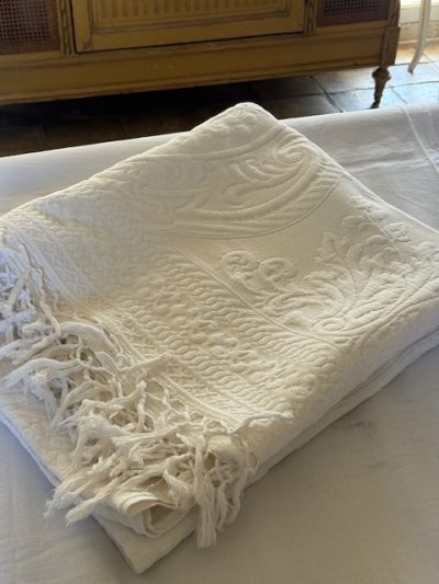 ピケ・ドゥ・マルセイユ ホワイトコットンカバー(フリンジ付き)