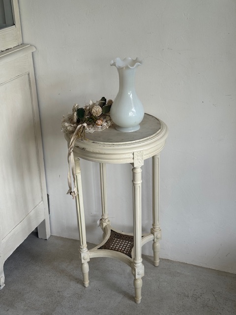 フレーム:木製 天板の大理石周りのペイントが剥がれている箇所がございます。