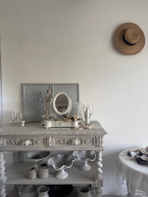 やわらかなホワイトカラーにシャビーな風合いが加わり、優しい雰囲気でどんな空間にも馴染むお品です。
