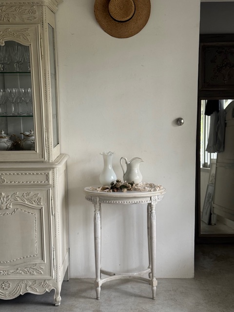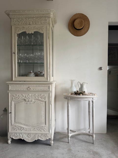 リビングやエントランス、寝室のベッドサイドなど、ちょっとしたスペースに取り入れるだけで空間がまとまり、アンティークらしい気品を添えてくれる一台です。