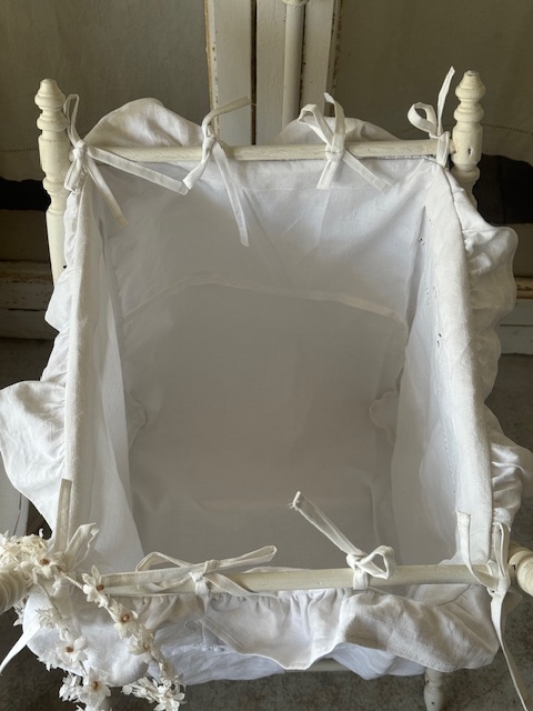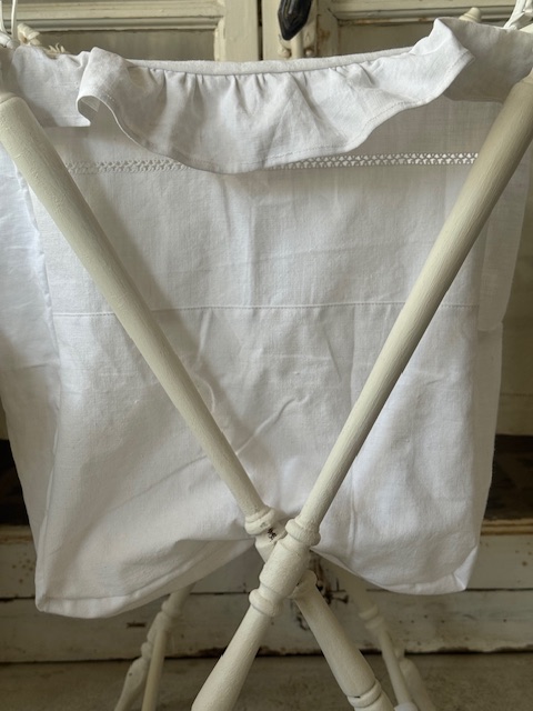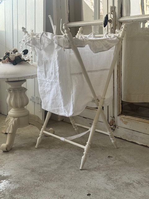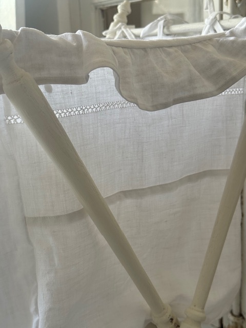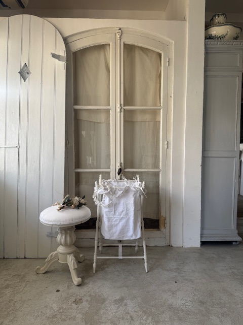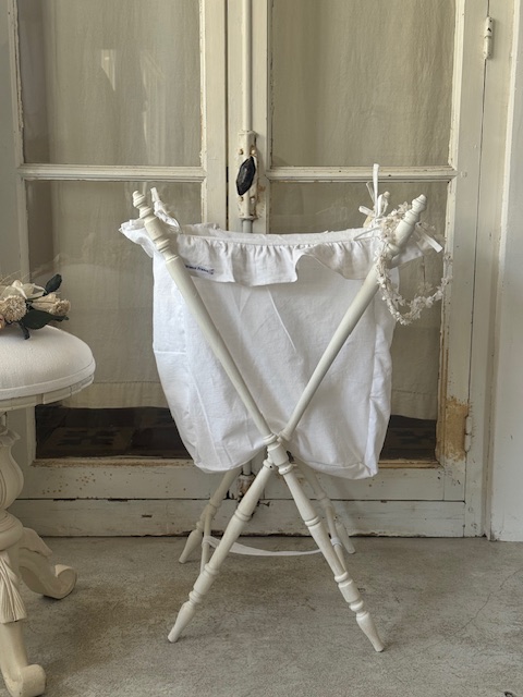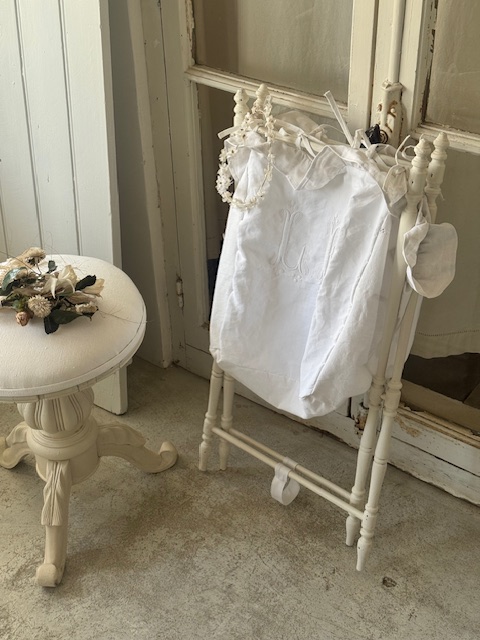 アンティークのホワイトリネンと木製フレームの組み合わせが非常に上品でサロンやリビング、寝室、アトリエなど、どの空間にも柔らかく馴染みます。