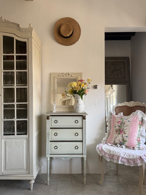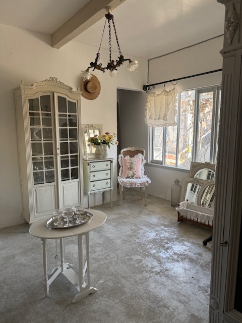 空間をやさしく明るくしてくれる色合いとフランスアンティークらしい気品を感じさせるお品です。