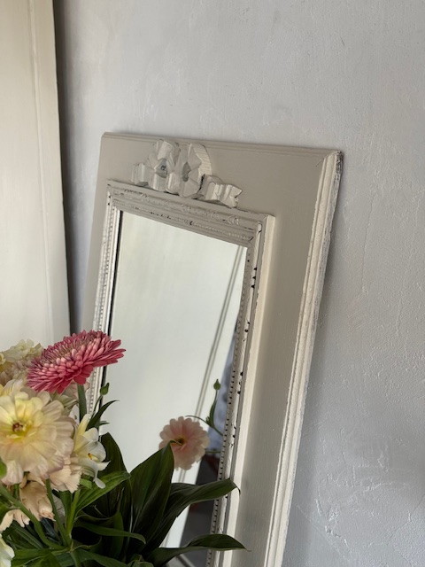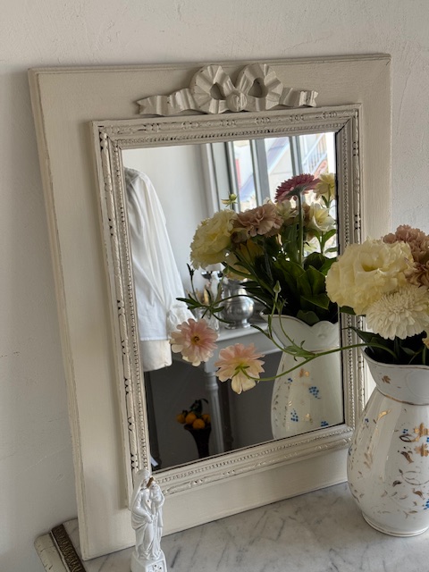 1900年初頭フランスアンティークリボン装飾付き 木製フレームミラー。